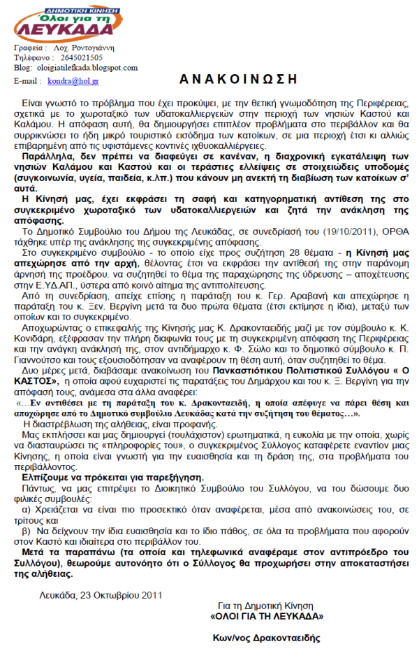 ΑΝΑΚΟΙΝΩΣΕΙΣ - ΔΕΛΤΙΑ ΤΥΠΟΥ 24 Οκτωβρίου 2011 0 Για τις ιχθυοκαλλιέργειες Σύντομος σύνδεσμος άρθρου: https://meganisinews.eu/post/0oid ShareTweet0 Shares Tags: ΔΗΜΟΤΙΚΗ ΚΙΝΗΣΗ "ΟΛΟΙ ΓΙΑ ΤΗ ΛΕΥΚΑΔΑ", ΔΡΑΚΟΝΤΑΕΙΔΗΣ, ΙΧΘΥΟΚΑΛΛΙΕΡΓΕΙΣ, ΚΑΛΑΜΟΣ, ΚΑΣΤΟΣ