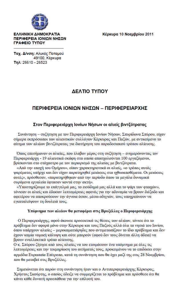 Αλιεία 10 Νοεμβρίου 2011 0 Στον Περιφερειάρχη οι αλιείς βιντζότρατας Στο κέντρο ο Περιφερειάρχης Ιονίων Νήσων, Σπυρίδων Σπύρου, με τους αλιείς και τον Αντιπεριφερειάρχη Κέρκυρας, Χρήστο Σκούρτη (όρθιος δεξιά) Σύντομος σύνδεσμος άρθρου: https://meganisinews.eu/post/brcv ShareTweet0 Shares Tags: Στον Περιφερειάρχη Ιονίων Νήσων οι αλιείς βιντζότρατας