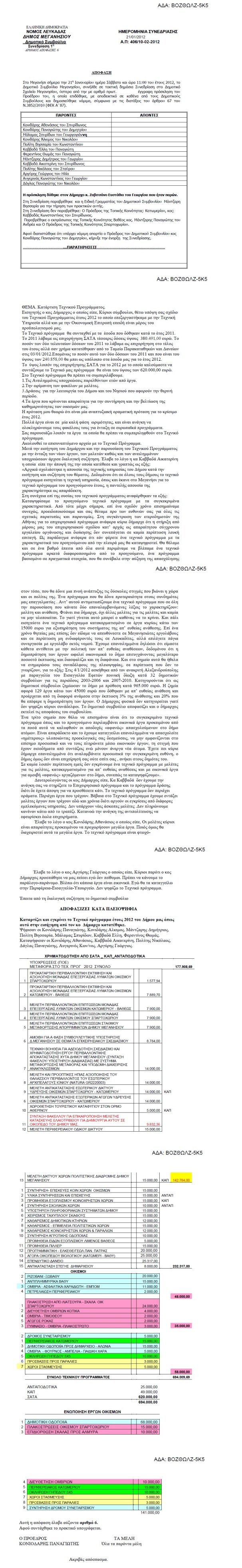 Αναρτήθηκε στη “ΔΙΑΥΓΕΙΑ” η Απόφαση 6/2012 του δήμου, με θέμα το Τεχνικό Πρόγραμμα του Δήμου Μεγανησίου. Το περιεχόμενο του ρεπορτάζ του Meganisi News (Oι «ημέτεροι» του Μεγανησίου στο στόχαστρο της αντιπολίτευσης) επιβεβαιώνεται πλήρως.