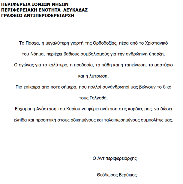 Ευχετήρια μηνύματα 10 Απριλίου 2012 0 Ευχές από τον Αντ/ρχη κ. Θ. Βερύκιο Σύντομος σύνδεσμος άρθρου: https://meganisinews.eu/post/y46 ShareTweet0 Shares Tags: αντιπεριφερειάρχης, ΕΥΧΕΣ, ΘΟΔΩΡΗΣ ΒΕΡΥΚΙΟΣ, ΠΑΣΧΑ