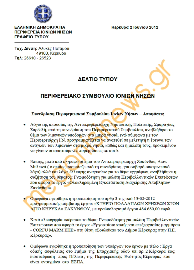 ΑΝΑΚΟΙΝΩΣΕΙΣ - ΔΕΛΤΙΑ ΤΥΠΟΥ 2 Ιουνίου 2012 0 Οι αποφάσεις της συνεδρίασης του Περιφερειακού Συμβουλίου Ιονίων Νήσων (2/6/2012) Σύντομος σύνδεσμος άρθρου: https://meganisinews.eu/post/4vr ShareTweet0 Shares Tags: ΑΠΟΦΑΣΕΙΣ ΠΕΡΙΦΕΡΕΙΑΚΟΥ ΣΥΜΒΟΥΛΙΟΥ ΙΟΝΙΩΝ ΝΗΣΩΝ 2/6/2012, ΠΙΝ