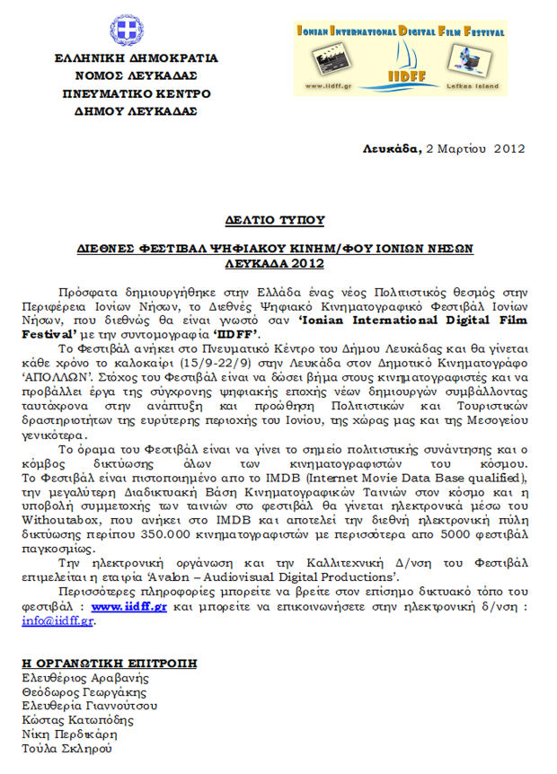 ΜΕΓΑΝΗΣΙΩΤΙΚΑ 11 Ιουνίου 2012 0 1ο Διεθνές Φεστιβάλ Ψηφιακού Κινηματογράφου Ιονίων Νήσων στη Λευκάδα – Το Meganisi News στους χορηγoύς επικοινωνίας του Φεστιβάλ Σύντομος σύνδεσμος άρθρου: https://meganisinews.eu/post/quqg ShareTweet0 Shares Tags: IIDFF, Διεθνές Φεστιβάλ Ψηφιακού Κινηματογράφου Ιονίων Νήσων στη Λευκάδα, ΙΟΝΙΑ ΝΗΣΙΑ, ΚΙΝΗΜΑΤΟΓΡΑΦΟΣ, ΛΕΥΚΑΔΑ, ΤΟ MEGANISI NEWS ΧΟΡΗΓΟΣ ΕΠΙΚΟΙΝΩΝΙΑΣ ΣΤΟ ΔΙΕΘΝΕΣ ΦΕΣΤΙΒΑΛ ΨΗΦΙΑΚΟΥ ΚΙΝΗΜΑΤΟΓΡΑΦΟΥ ΙΟΝΙΩΝ ΝΗΣΩΝ ΣΤΗ ΛΕΥΚΑΔΑ, ΦΕΣΤΙΒΑΛ