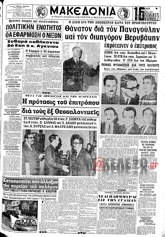 “Για να θυμούνται οι παλιότεροι και να μαθαίνουν οι νέοι, εφημερίδες της εποχής δημοσιεύουν την αγόρευση του επιτρόπου Ανδρεουλάκου. Χαρακτηριστικά είπε: “η αρχή ότι η επικρατούσα επανάστασις δημιουργεί δίκαιον είναι διεθνώς αναγνωρισμένη. Η επανάστασις της 21ης Απριλίου επικράτησε πλήρως εσωτερικώς και ανεγνωρίσθη εφ´ όλων των κρατών εξωτερικώς. Επομένως εδημιούργησεν δίκαιον. Οι κατηγορούμενοι παραπέμπονται ως σκοπούντες την ανατροπή του κρατούντος πολιτεύματος και την ανατροπή της καθεστηκυίας τάξεως του παρόντως επαναστατικού καθεστώτος ως τρόπου και μορφής πολιτεύματος“.