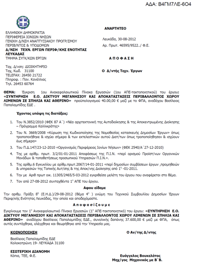 Εγκρίθηκαν από την Περιφέρεια η συντήρηση Ε.Ο δικτύου Μεγανησίου και η αποκατάσταση των λιμανιών σε Σπήλια και Αθερινό