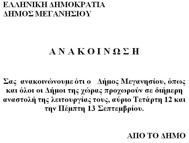 ΜΕΓΑΝΗΣΙΩΤΙΚΑ 16 Σεπτεμβρίου 2013 0 Απευθείας αναθέσεις για τον Αθερινό Οι αποφάσεις της Οικονομικής Επιτροπής του Δήμου Μεγανησίου, έτσι όπως αυτές αναρτήθηκαν στη “Διαύγεια” 1. Απευθείας ανάθεση Μελέτης «Τοπογραφική Αποτύπωση […]