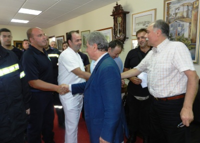 «Σας καλωσορίζω στην Περιφέρειά μας, μαζί με τον Αντιπεριφερειάρχη τον κύριο Σκούρτη, υπό δυσμενείς συνθήκες, θέλοντας να σας δηλώσω ότι συμμετέχουμε και κατανοούμε το μεγάλο πρόβλημα που αντιμετωπίζει η χώρα μας και βεβαίως το αντιμετωπίζουν όλοι οι εργαζόμενοι και εσείς που είστε όντως ειδικοί εργαζόμενοι χωρίς ειδικά μισθολόγια. Η προσφορά σας στην κοινωνία είναι πάρα πολύ μεγάλη και σημαντική και κυρίως αναγνωρισμένη. Με την εργασία σας έχετε εμπεδώσει το αίσθημα της ασφάλειας στους συμπολίτες μας αλλά βοηθάτε και στην πρόληψη και την προστασία της ζωής και της περιουσίας των συμπολιτών μας.