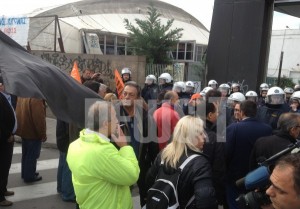 Τα επεισόδια στο κτίριο της ΔΕΘ που θα διεξαγόταν το ελληνογερμανικό συνέδριο, ξεκίνησαν στις 09.00, όταν εξαγριωμένοι εργαζόμενοι στους ΟΤΑ πέταξαν μπουκάλια στους συνέδρους και δεν τους επέτρεψαν να μπουν. Κάποιοι επιτέθηκαν στον Γερμανό πρόξενο που έκανε εκείνη την ώρα την εμφάνισή του…