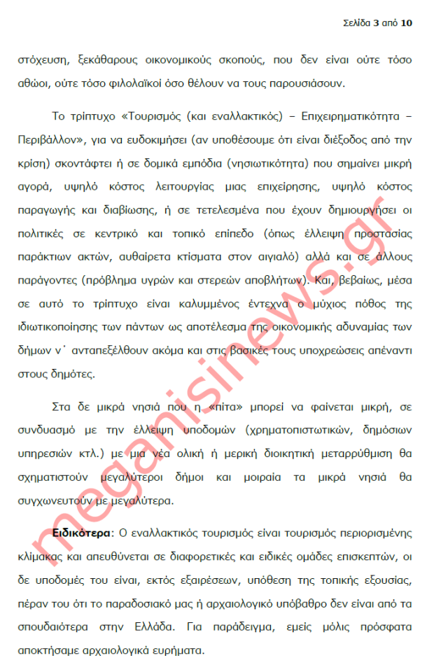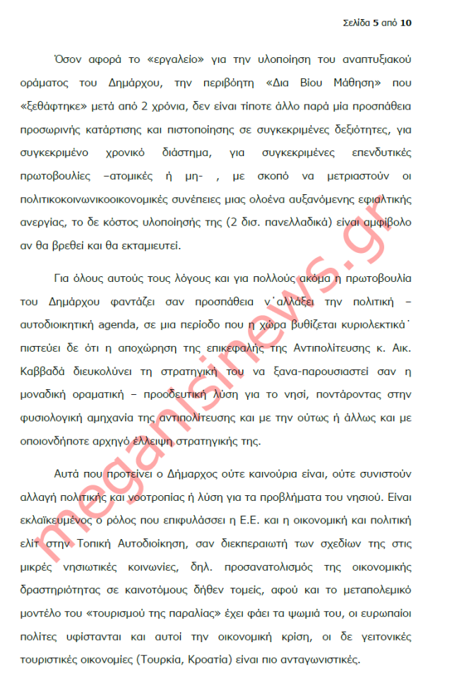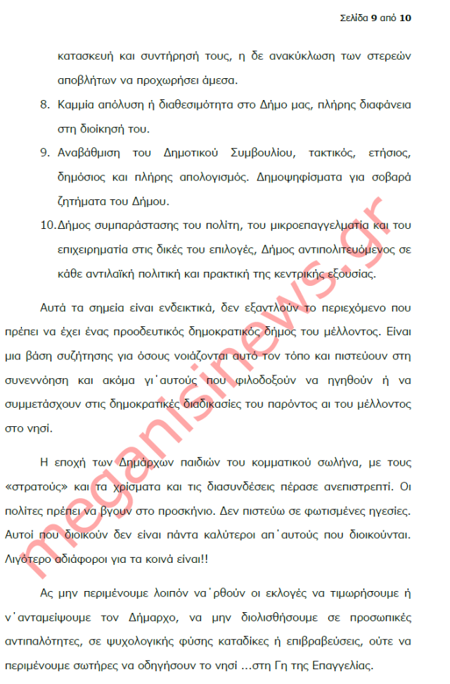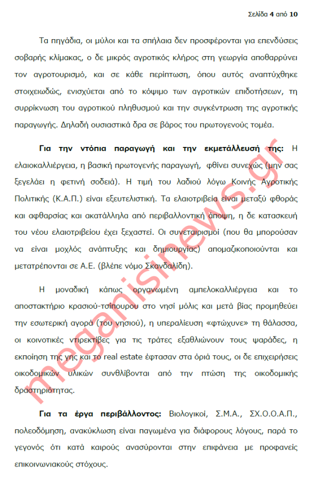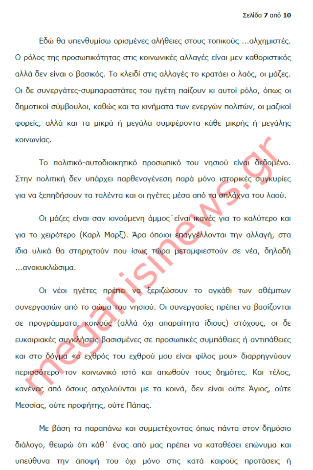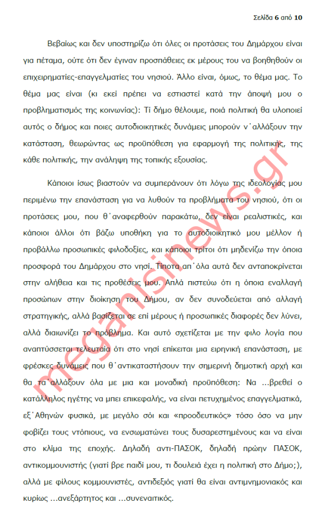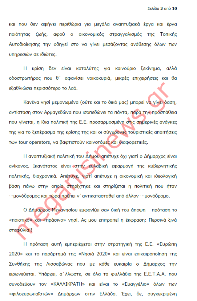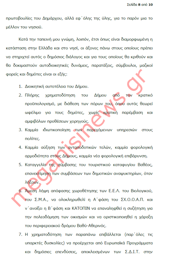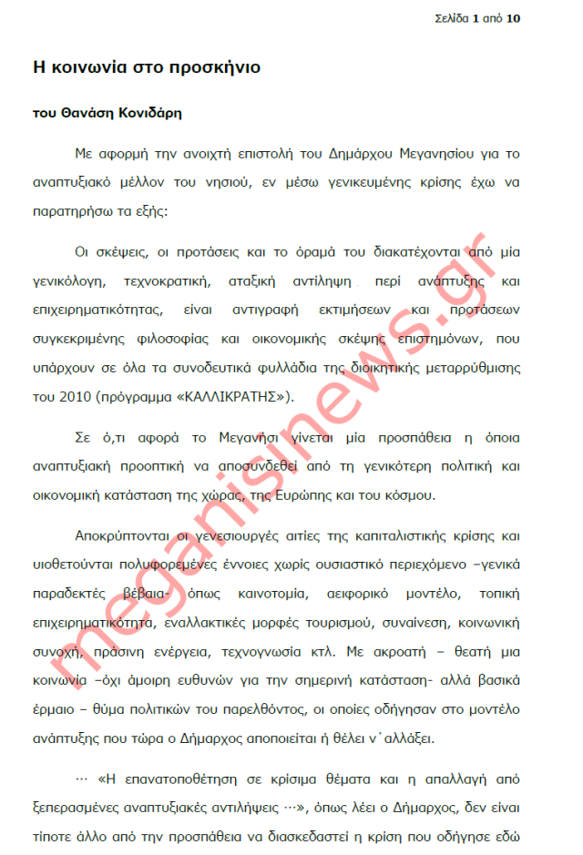 “Με αφορμή την ανοιχτή επιστολή του Δημάρχου Μεγανησίου για το αναπτυξιακό μέλλον του νησιού, εν μέσω γενικευμένης κρίσης έχω να παρατηρήσω τα εξής: