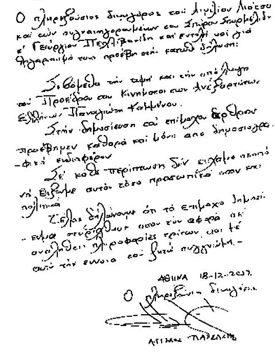Η παραπάνω δήλωση αφορά συκοφαντικά δημοσιεύματα με ψευδείς πληροφορίες που αναπαράχθηκαν στον έντυπο και ηλεκτρονικό τύπο με σκοπό να πλήξουν το κύρος του Κινήματος των ΑΝΕΞΑΡΤΗΤΩΝ ΕΛΛΗΝΩΝ και του προέδρου τους.