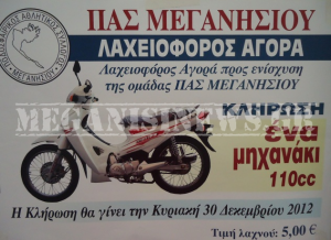 Στο χορό των Αποκριών θα γίνει η κλήρωση για την λαχειοφόρο αγορά με τον νικητή να κερδίζει ένα μηχανάκι Lifan 110 κυβικών.