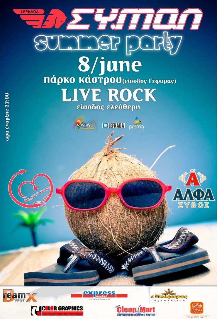 Το Σάββατο 08 Ιουνίου 2013 σας περιμένουμε όλους στο Πάρκο Κάστρου ( είσοδος γέφυρα – ΤΑΟΛ ) στο πάρτυ καλοκαιριού που διοργανώνει ο ΣΥ.ΜΟ.Λ. . Μια βραδιά γεμάτη με LIVE ROCK ήχους, νόστιμα σουβλάκια, παγωμένη μπύρα και με καλή διάθεση για διασκέδαση ως το ξημέρωμα!!!