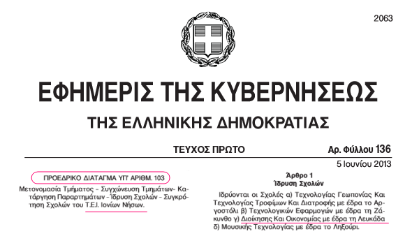 Το Προεδρικό Διάταγμα 103 (ΠΔ 103) για τις Σχολές του ΤΕΙ Ιονίων Νήσων σύμφωνα με το “Σχέδιο Αθηνά”