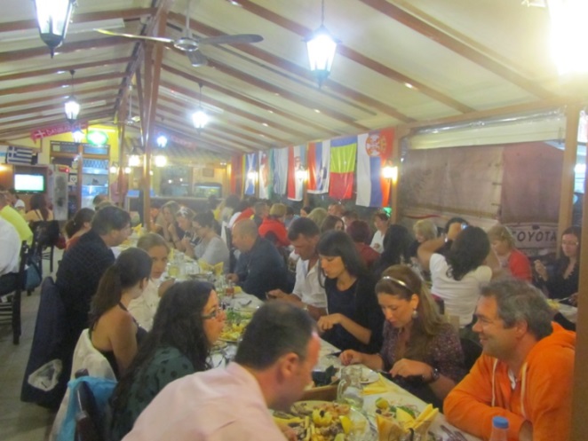 Ο Πρόεδρος του Επιμελητηρίου Λευκάδας, κος Σωτήρης Σκιαδαρέσης, καλωσόρισε όλους τους ρουμάνους ταξιδιωτικούς πράκτορες και δημοσιογράφους που επισκέφθηκαν το νησί μας σε μια ειδική ελληνική βραδιά που παρέθεσε το Επιμελητήριο σε εστιατόριο στο Νυδρί.
