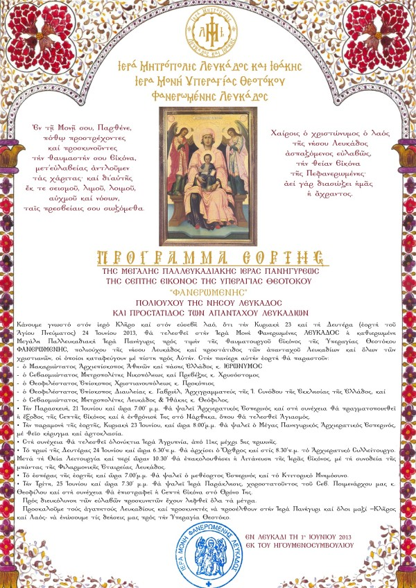 Δείτε όλο το πρόγραμμα της πανήγυρις της μεγάλης θρησκευτικής εορτής για τη Λευκάδα: