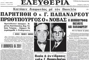 Μετά την προφορική δήλωση της παραίτησης του Γ. Παπανδρέου, ο επόμενος πρωθυπουργός, Γεώργιος Αθανασιάδης-Νόβας, μέλος της Ενώσεως Κέντρου, ορκίστηκε μέσα στην επόμενη ώρα, χωρίς να έχει συνταχθεί ακόμα η έγγραφη παραίτηση της κυβέρνησης. Oι δρόμοι της Aθήνας γέμισαν από διαδηλωτές που διαμαρτύρονταν για την ανατροπή του νόμιμου πρωθυπουργού Γ. Παπανδρέου ενώ οι κινητοποιήσεις που οργανώνονταν από την Ένωση Κέντρου και την αριστερή ΕΔΑ κατέληγαν σε συγκρούσεις με την αστυνομία θύμα των οποίων υπήρξε και ο 25χρονος φοιτητής και στέλεχος της Αριστεράς Σωτήρης Πέτρουλας.