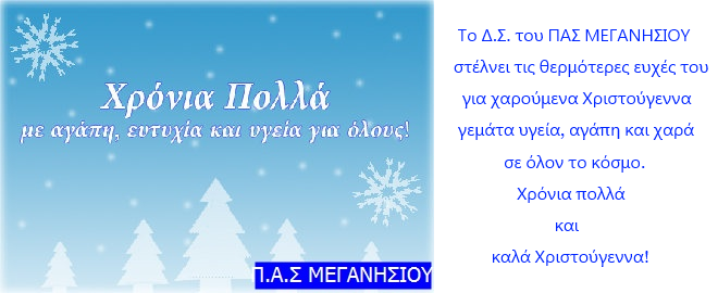 ΜΕΓΑΝΗΣΙΩΤΙΚΑ 24 Δεκεμβρίου 2013 0 Οι χριστουγεννιάτικες ευχές του ΠΑΣ ΜΕΓΑΝΗΣΙΟΥ Σύντομος σύνδεσμος άρθρου: https://meganisinews.eu/post/8r02 ShareTweet0 Shares Tags: ΠΑΣ ΜΕΓΑΝΗΣΙΟΥ