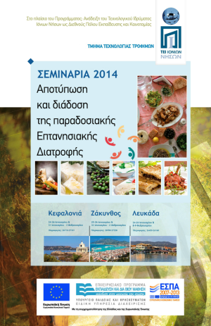 Το Επιμελητήριο Λευκάδας κάνει γνωστό στα μέλη του ότι πρόκειται να πραγματοποιηθούν από το ΤΕΙ Ιονίων Νήσων σεμινάρια στη Λευκάδα το διάστημα από 24-26 Ιανουαρίου και 8-9 Φεβρουαρίου με θέμα την διάδοση της παραδοσιακής επτανησιακής διατροφής.