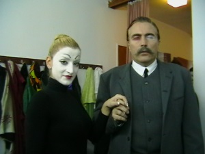 Στην φωτογραφία, στα καμαρίνια τού Θεάτρου τού Αμερικανικού Κολλεγίου Αθηνών, η Άννα Πολλάτου ως Γιαπωνέζα, κρατάει το χέρι μου, ως (μεταμορφωμένου σε Ποιητή) Λευκάδιου Χέρν.