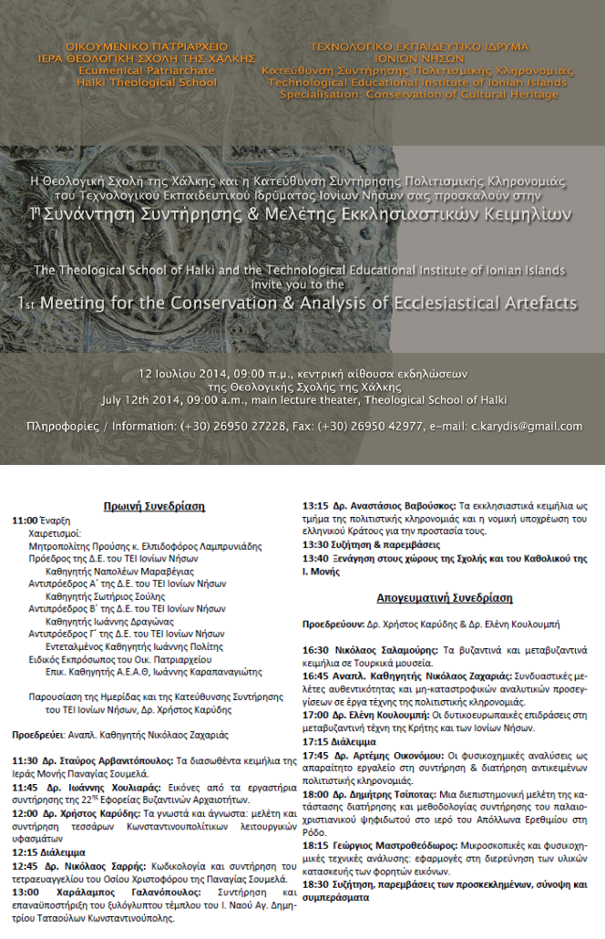 ΤΟΠΙΚΑ 16 Ιουνίου 2014 0 Πρόσκληση από το ΤΕΙ Ιονίων Νήσων στην Ημερίδα “Συντήρηση Πολιτισμικής Κληρονομιάς” Η πρόσκληση και το πρόγραμμα της Ημερίδας Σύντομος σύνδεσμος άρθρου: https://meganisinews.eu/post/dqeg ShareTweet0 Shares Tags: ΗΜΕΡΙΔΑ, ΘΕΟΛΟΓΙΚΗ ΣΧΟΛΗ, συντηρηση πολιτισμικής κληρονομιάς, ΤΕΙ ΙΟΝΙΩΝ ΝΗΣΩΝ, ΧΑΛΚΗ