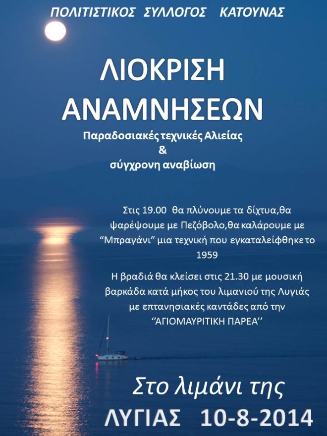 ΤΟΠΙΚΑ 6 Αυγούστου 2014 0 “Λιόκριση αναμνήσεων” από τον Πολιτιστικό Σύλλογο Κατούνας Παραδοσιακές τεχνικές αλιείας & σύγχρονη αναβίωση. 10 Αυγούστου στο λιμάνι της Λυγιάς Σύντομος σύνδεσμος άρθρου: https://meganisinews.eu/post/ure1 ShareTweet0 Shares Tags: ΑΝΑΒΙΩΣΗ, ΛΙΟΚΡΙΣΗ ΑΝΑΜΝΗΣΕΩΝ, ΛΥΓΙΑ, ΠΑΡΑΔΟΣΙΑΚΕΣ ΤΕΧΝΙΚΕΣ ΑΛΙΕΙΑΣ, ΠΟΛΙΤΙΣΤΙΚΟΣ ΣΥΛΛΟΓΟΣ ΚΑΤΟΥΝΑΣ