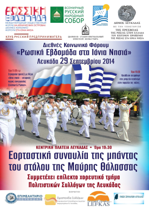 Το διεθνές κοινωνικό φόρουμ «Ρώσικη Εβδομάδα στα Ιόνια Νησιά», ένα από τα μεγαλύτερα κοινωνικά έργα στον τομέα της σύγχρονης λαϊκής (μη κυβερνητικής) διπλωματίας, του διαλόγου μεταξύ των λαών και της πολιτιστικής ανταλλαγής, λαμβάνει χώρα στη Λευκάδα από 28 έως 30 Σεπτεμβρίου με την υποστήριξη του Δήμου Λευκάδας.