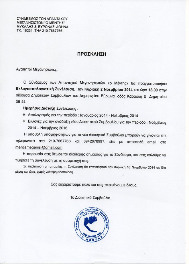 ΜΕΓΑΝΗΣΙΩΤΙΚΑ 10 Οκτωβρίου 2014 0 Εκλογοαπολογιστική συνέλευση του “Μέντη” Σύντομος σύνδεσμος άρθρου: https://meganisinews.eu/post/dsmh ShareTweet0 Shares Tags: μεγανήσι, ΜΕΝΤΗΣ