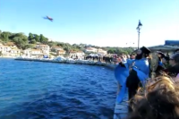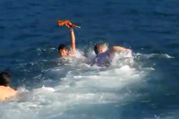 Το τσουχτερό κρύο στο Μεγανήσι δεν εμπόδισε διόλου τους τρεις τολμηρούς νέους να βουτήξουν στα παγωμένα νερά του Βαθιού και να πιάσουν τον σταυρό στην τελετή καθαγιασμού των υδάτων.