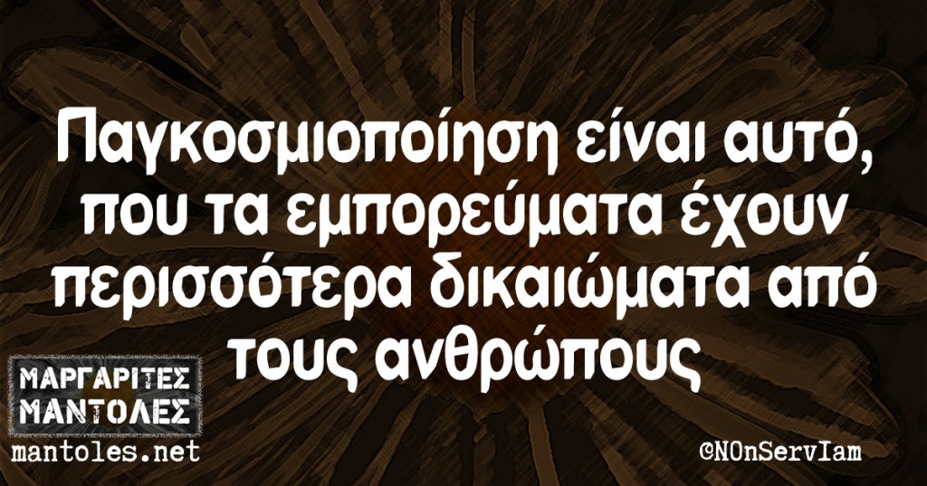 Και συμπληρώνει το κείμενο: «Νέες μορφές υποταγής των κρατών, των εκλεγμένων εξουσιών και των νομοθεσιών σε κείνους που κυβερνούν την παγκόσμια αγορά και νέες μορφές υποταγής στις οδηγίες τους…»