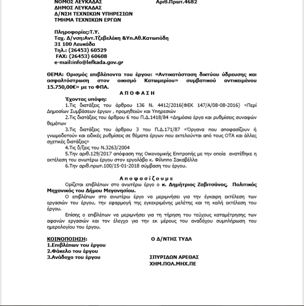 Ορίστηκε κι από την Λευκάδα ο επιβλέπων μηχανικός