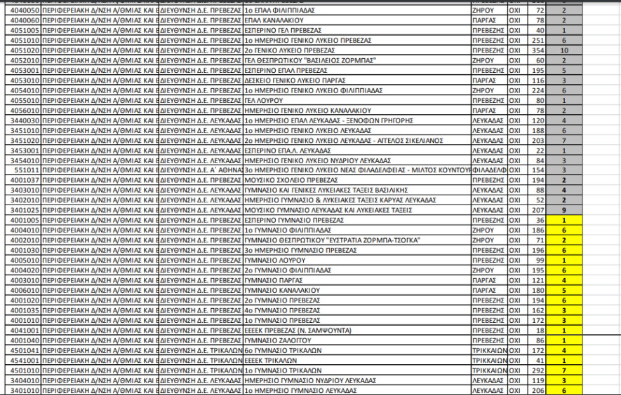 Βρίσκονται μαζί στην λίστα με σχολεία των Τρικάλων και της Πρέβεζας